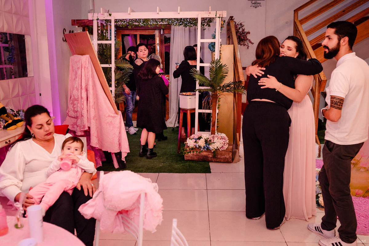 Sempre prontos para registrar tudinho, ela chegou muito feliz na sua festa, todos queriam abraçar e beijar a Juliana...