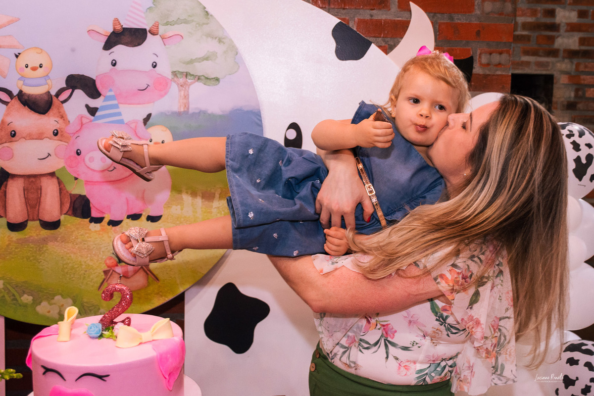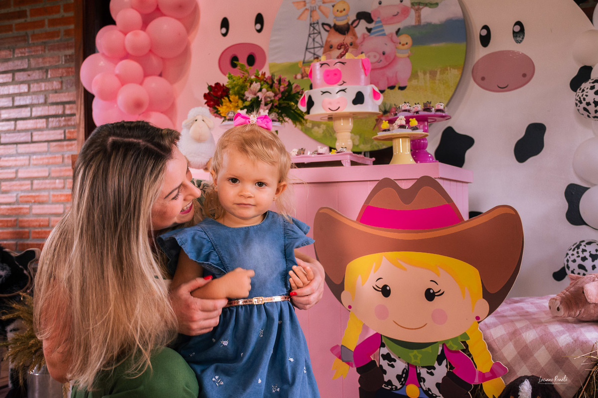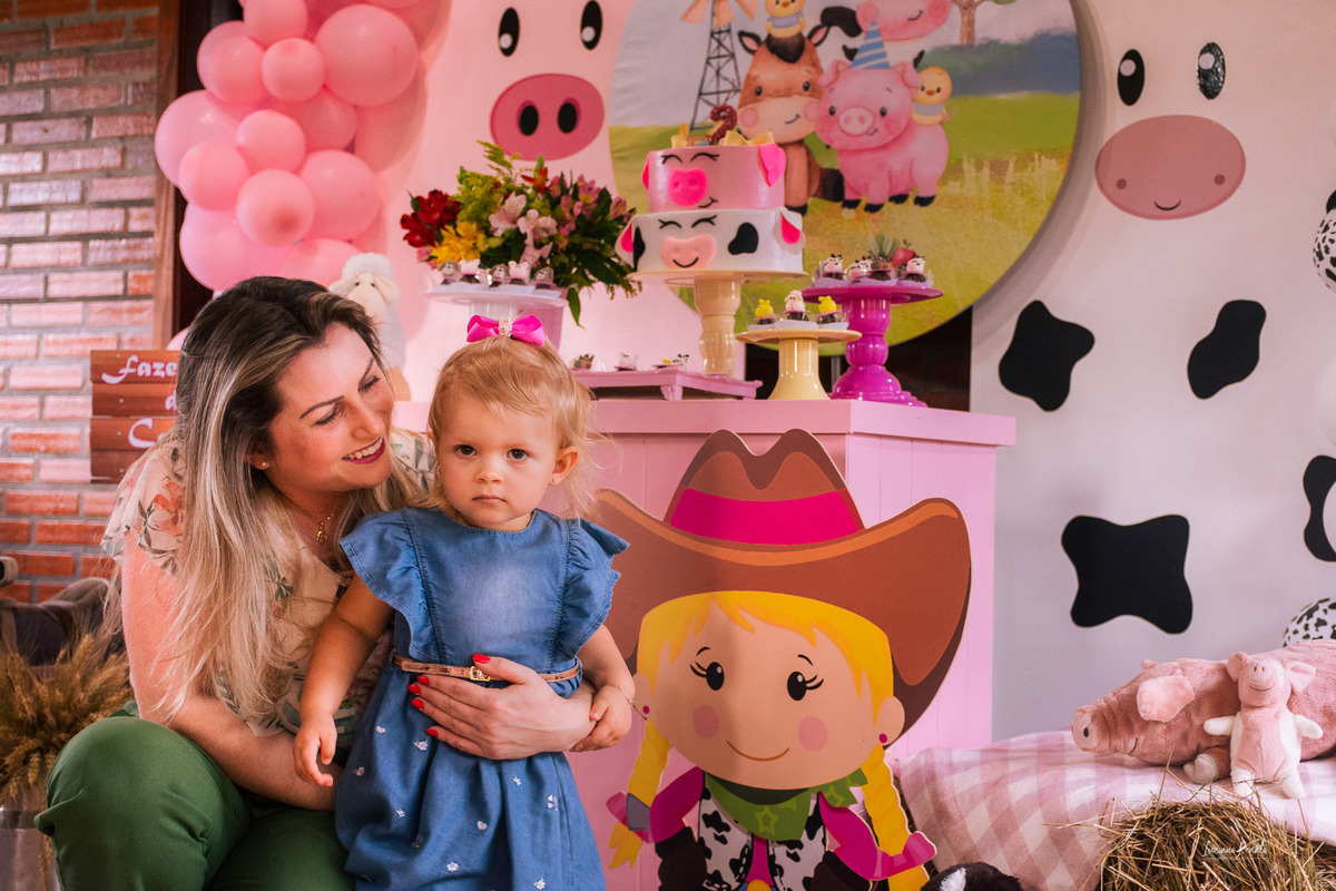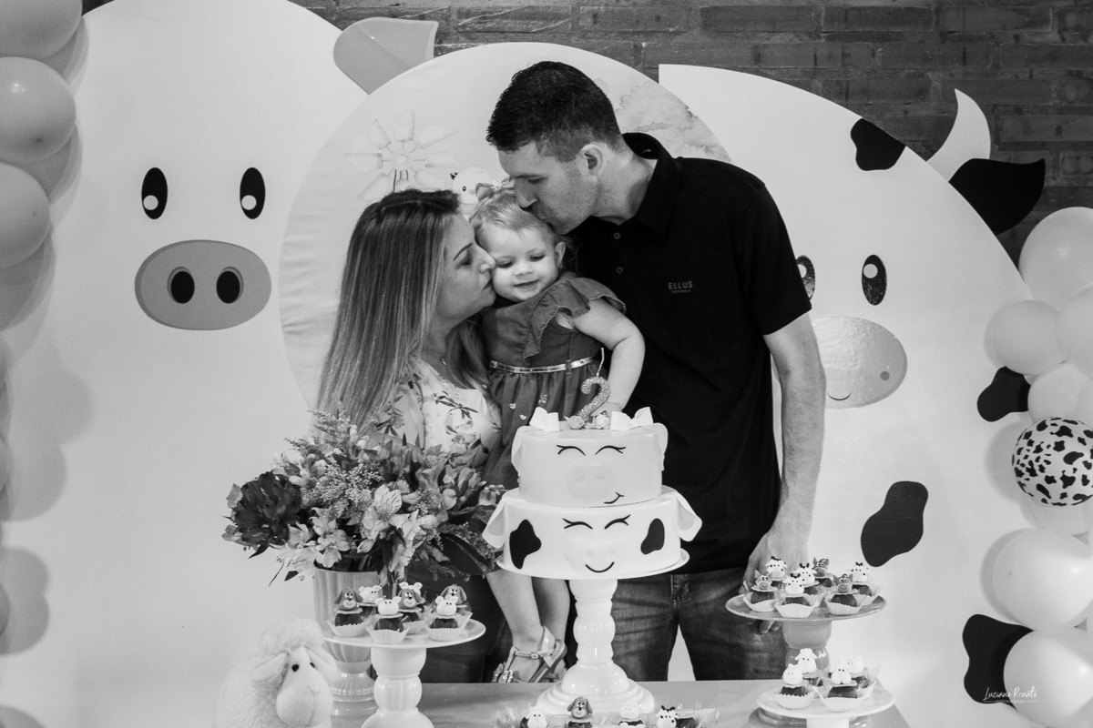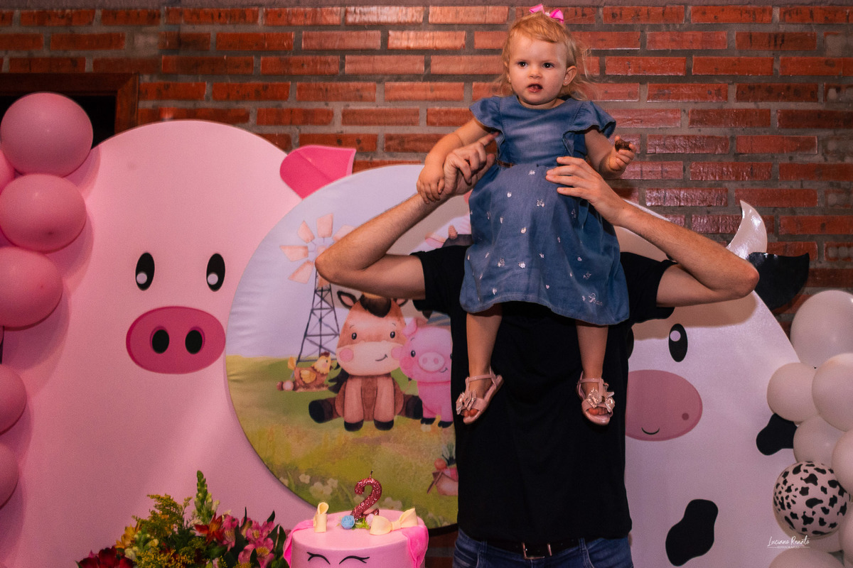 Os pais, a Graci e o Cássio são incríveis, divertidos e apaixonados pela pequena. Ela aproveitou muito os brinquedos e a decoração da fazendinha, que ficou um mimo.