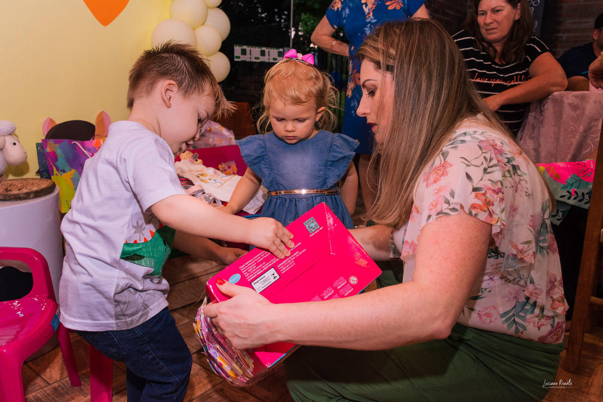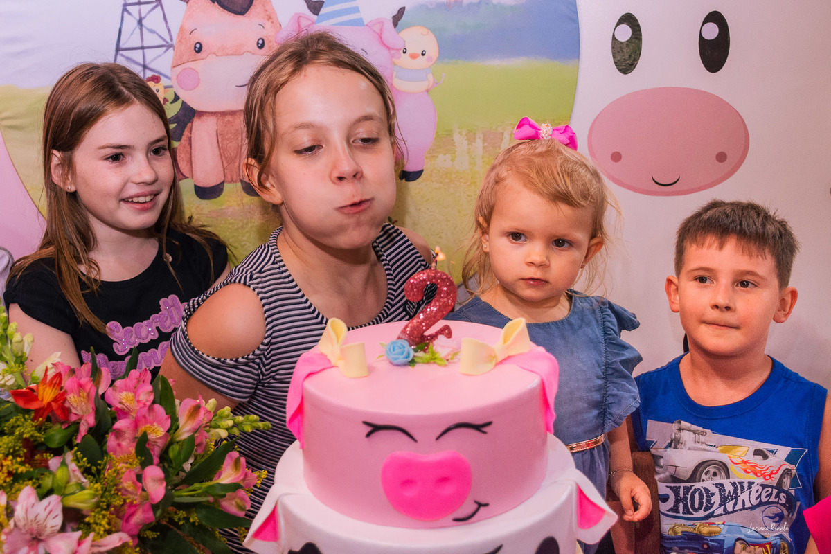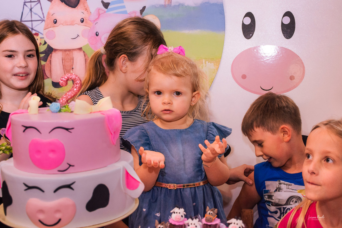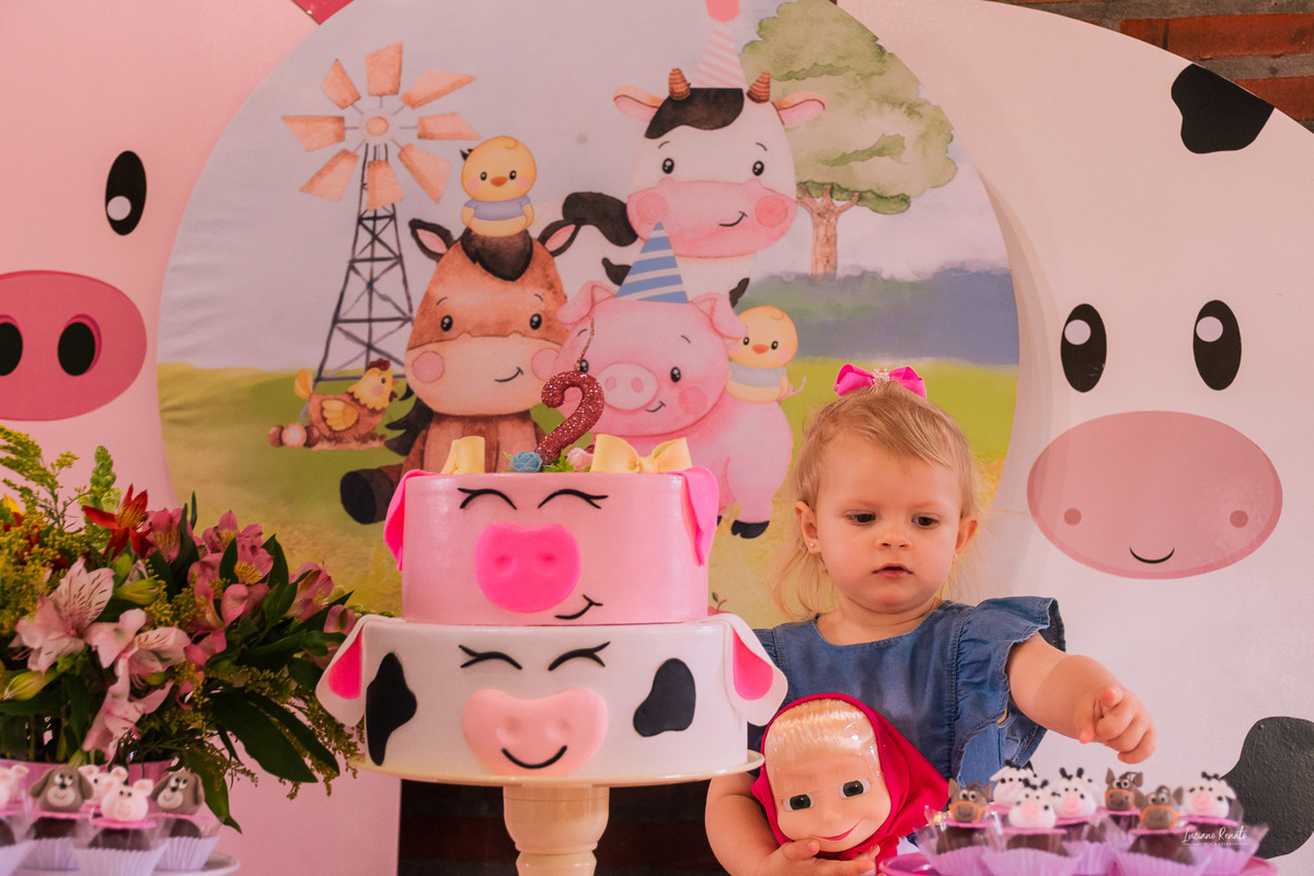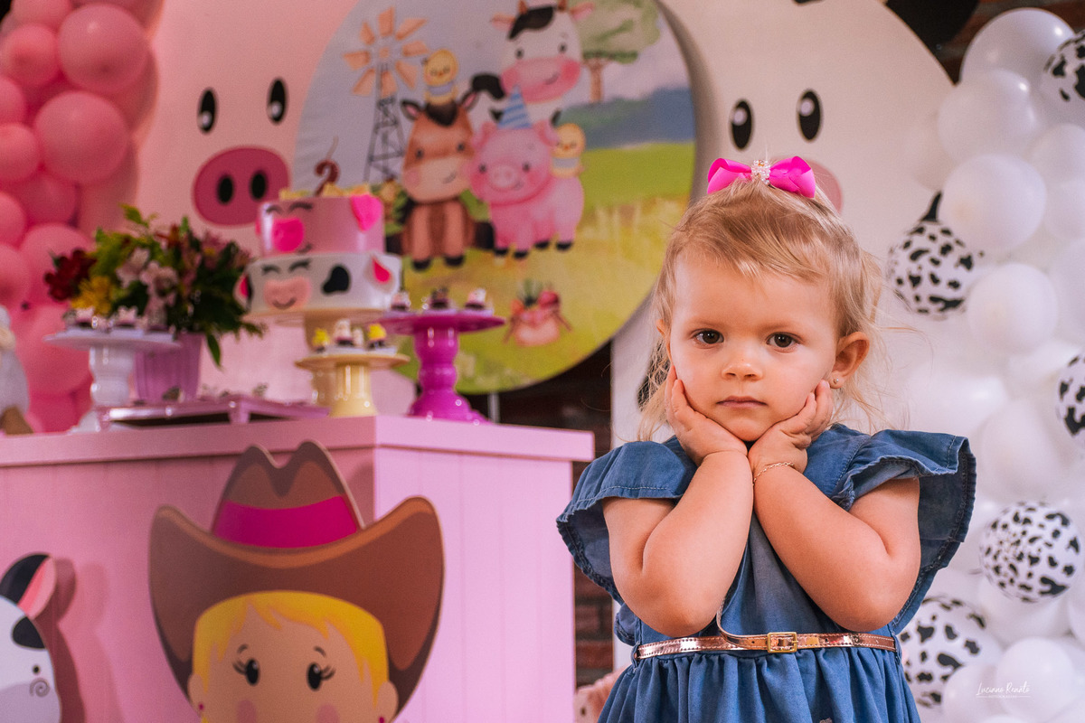 Os pais, a Graci e o Cássio são incríveis, divertidos e apaixonados pela pequena. Ela aproveitou muito os brinquedos e a decoração da fazendinha, que ficou um mimo.