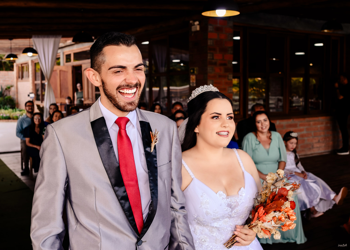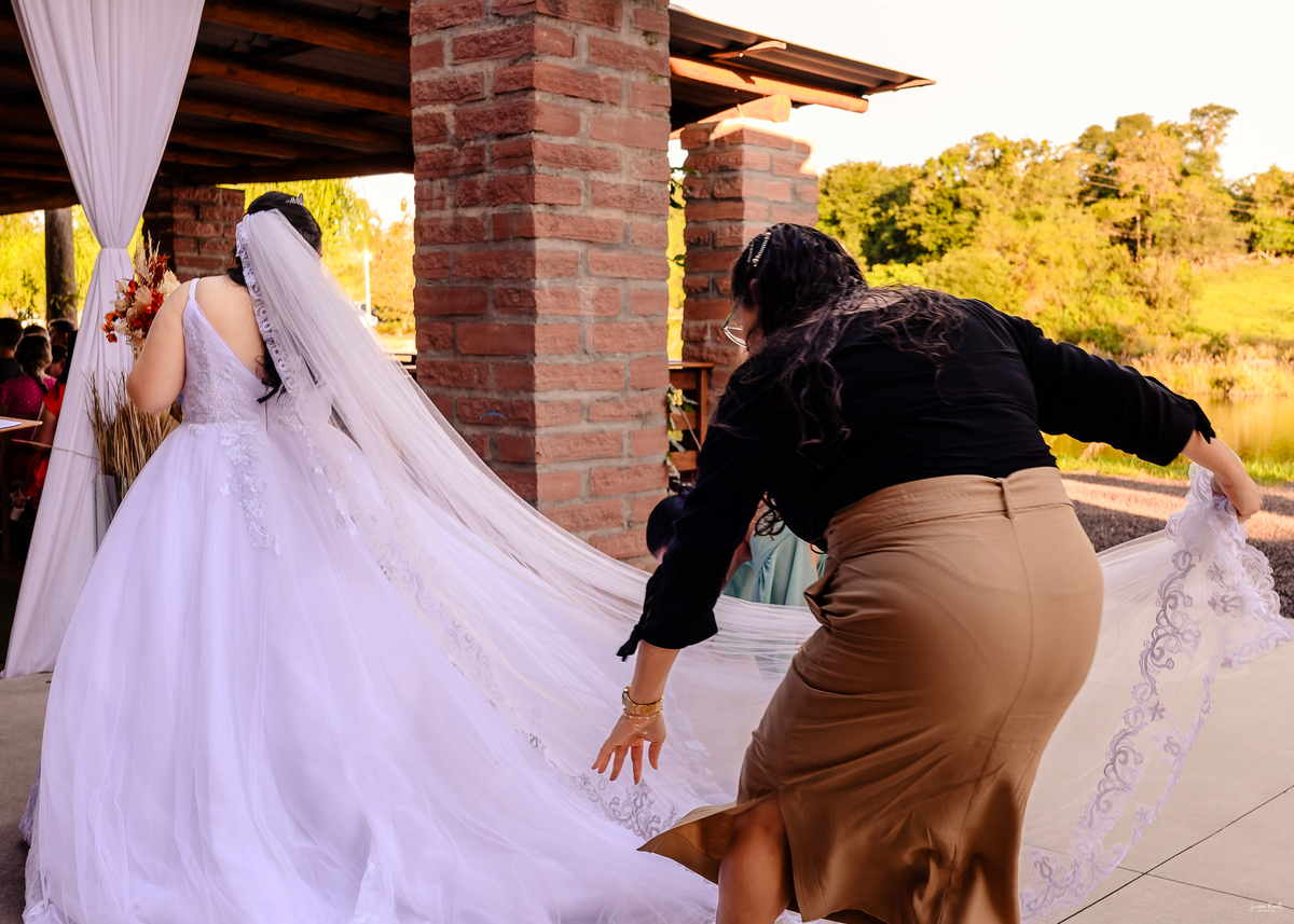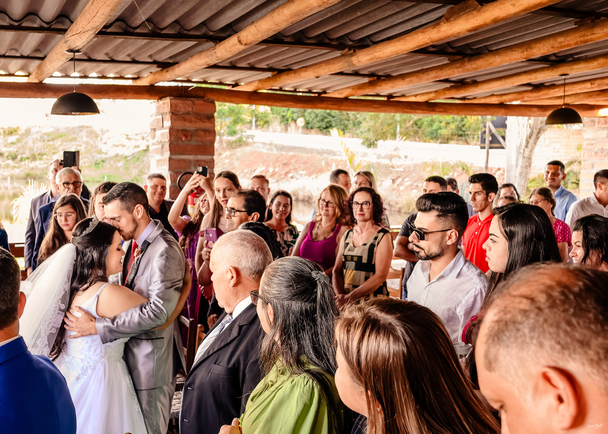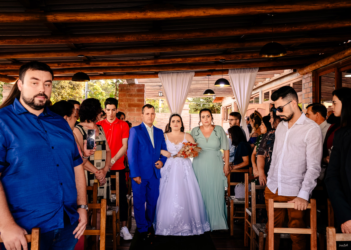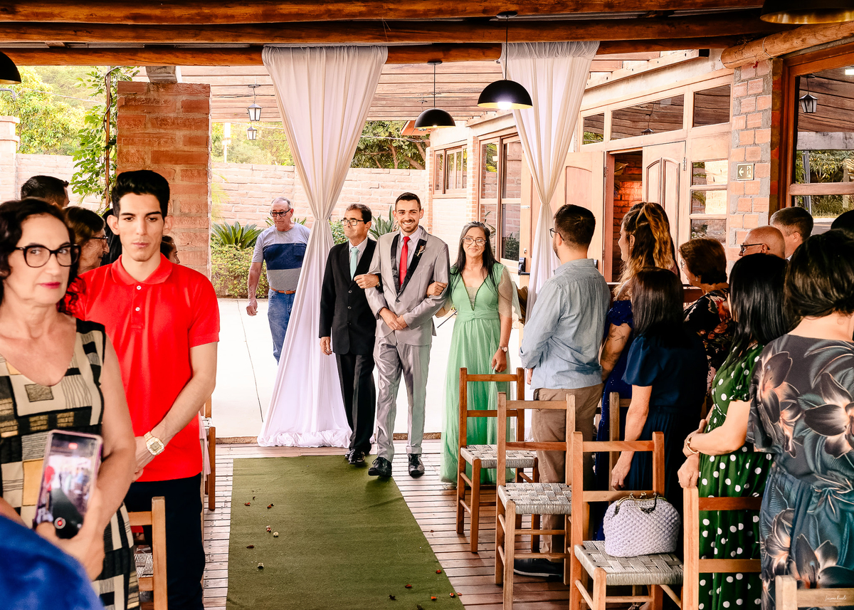 Um detalhe que marcou este dia especial foi a entrada da noiva antes do noivo. Um toque de surpresa que adicionou ainda mais emoção ao momento, criando um suspense encantador enquanto todos aguardavam ansiosamente pelo encontro do casal.