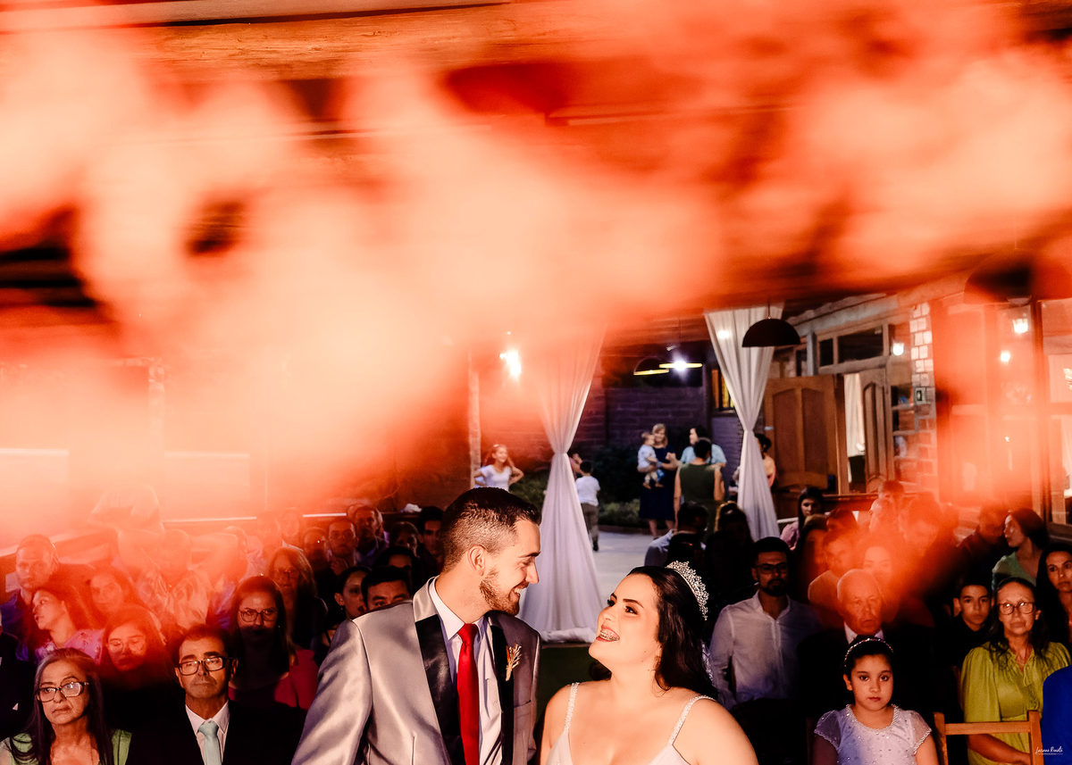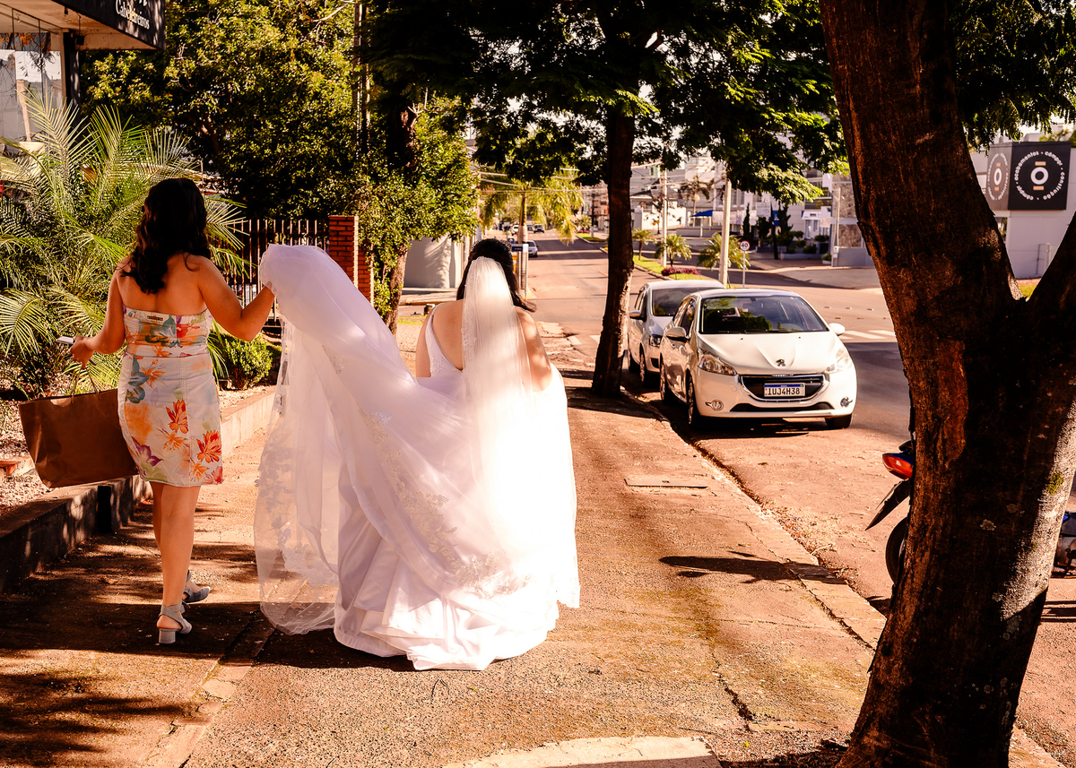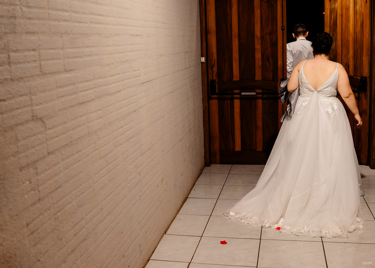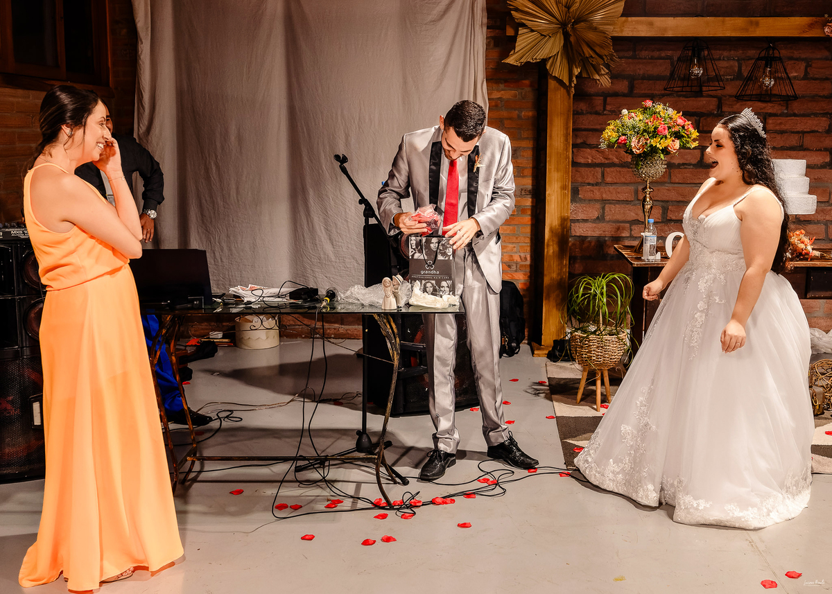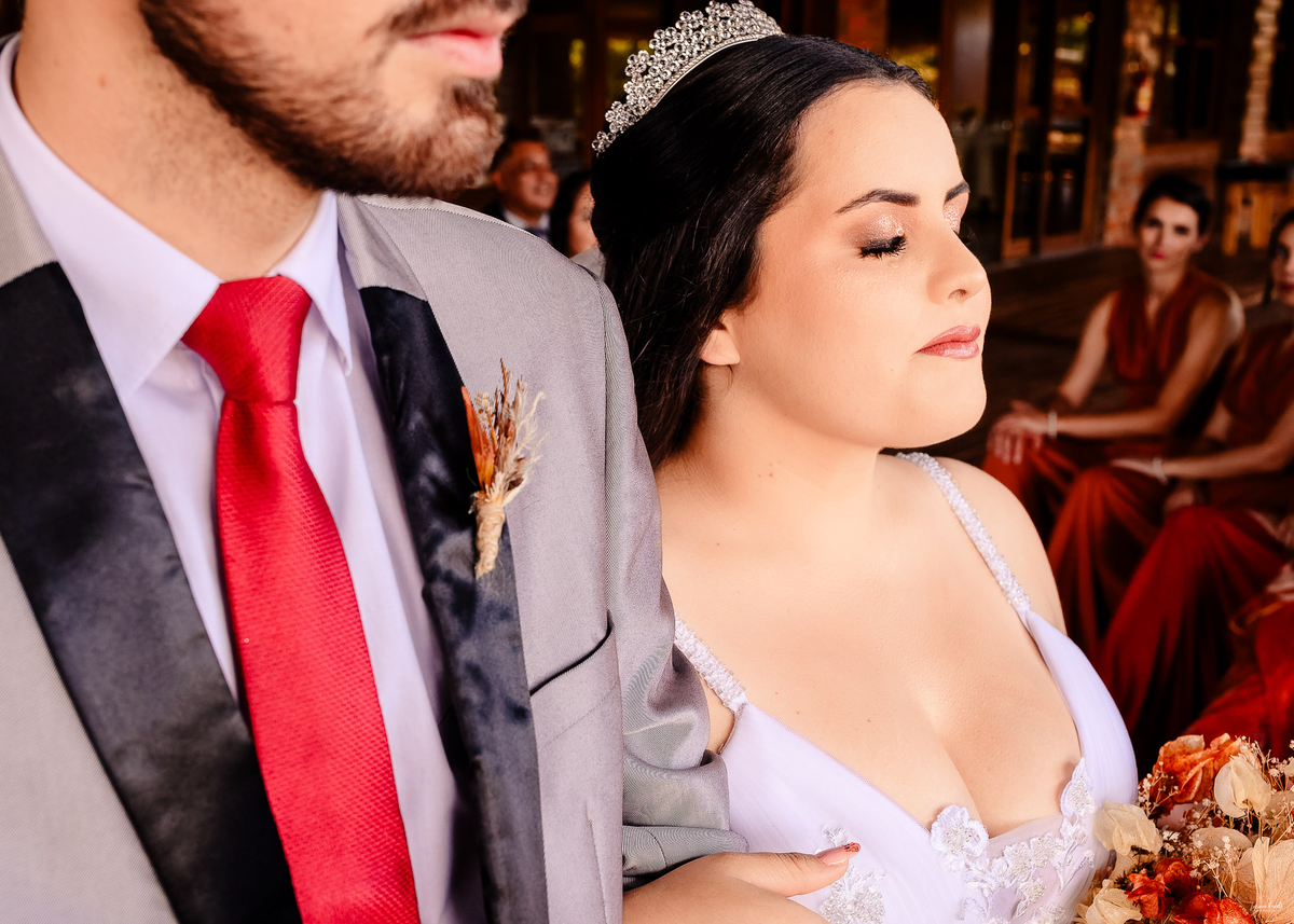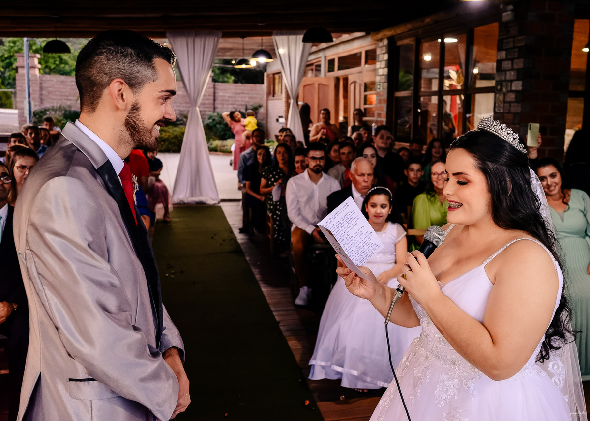 Um detalhe que marcou este dia especial foi a entrada da noiva antes do noivo. Um toque de surpresa que adicionou ainda mais emoção ao momento, criando um suspense encantador enquanto todos aguardavam ansiosamente pelo encontro do casal.