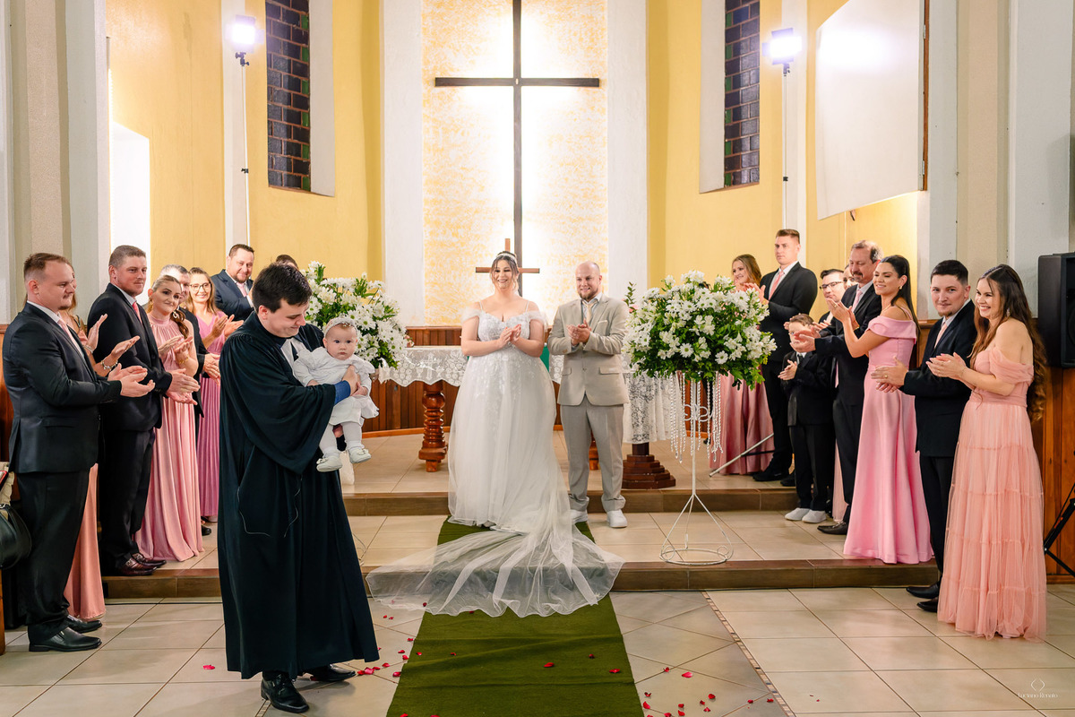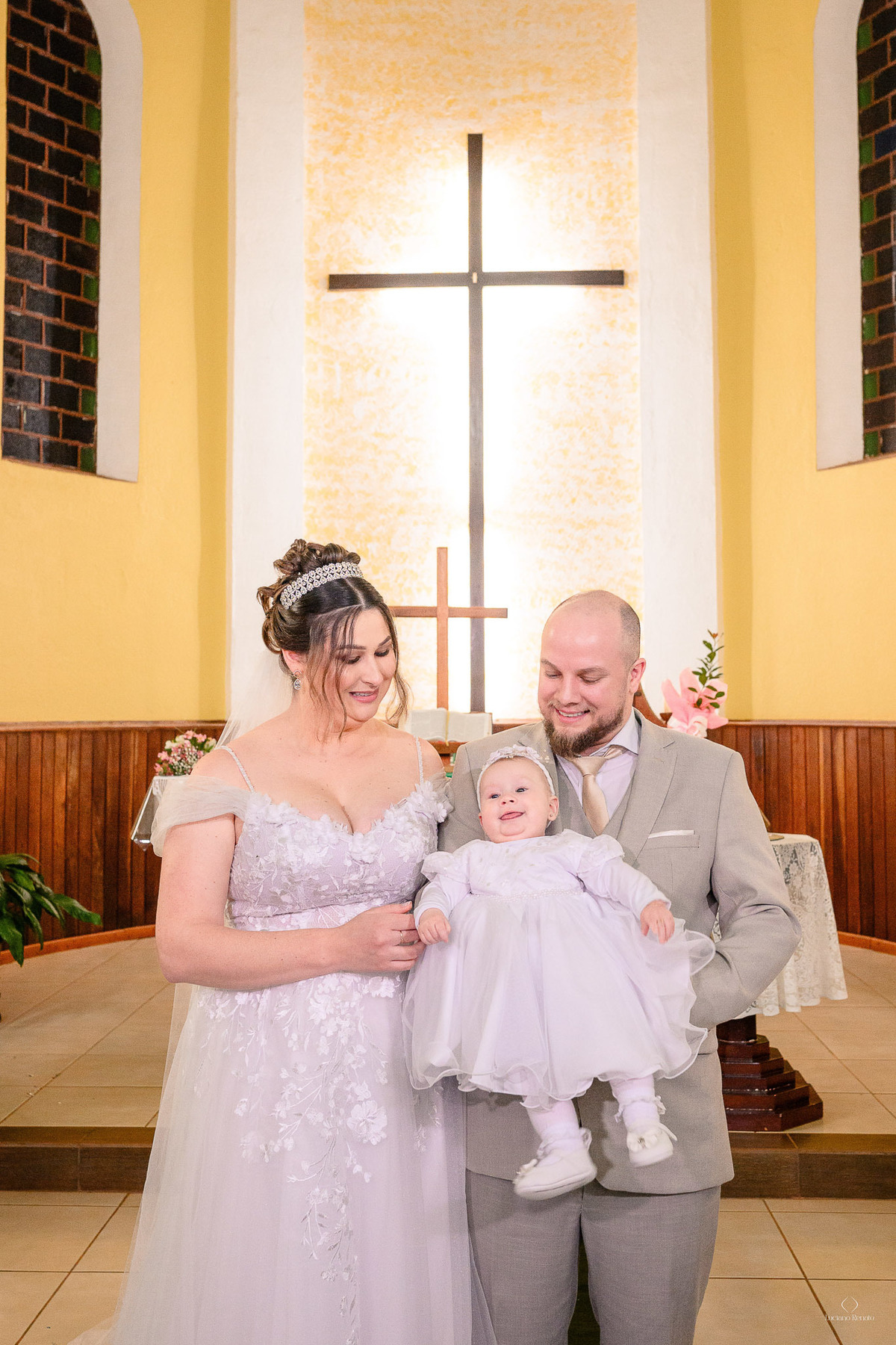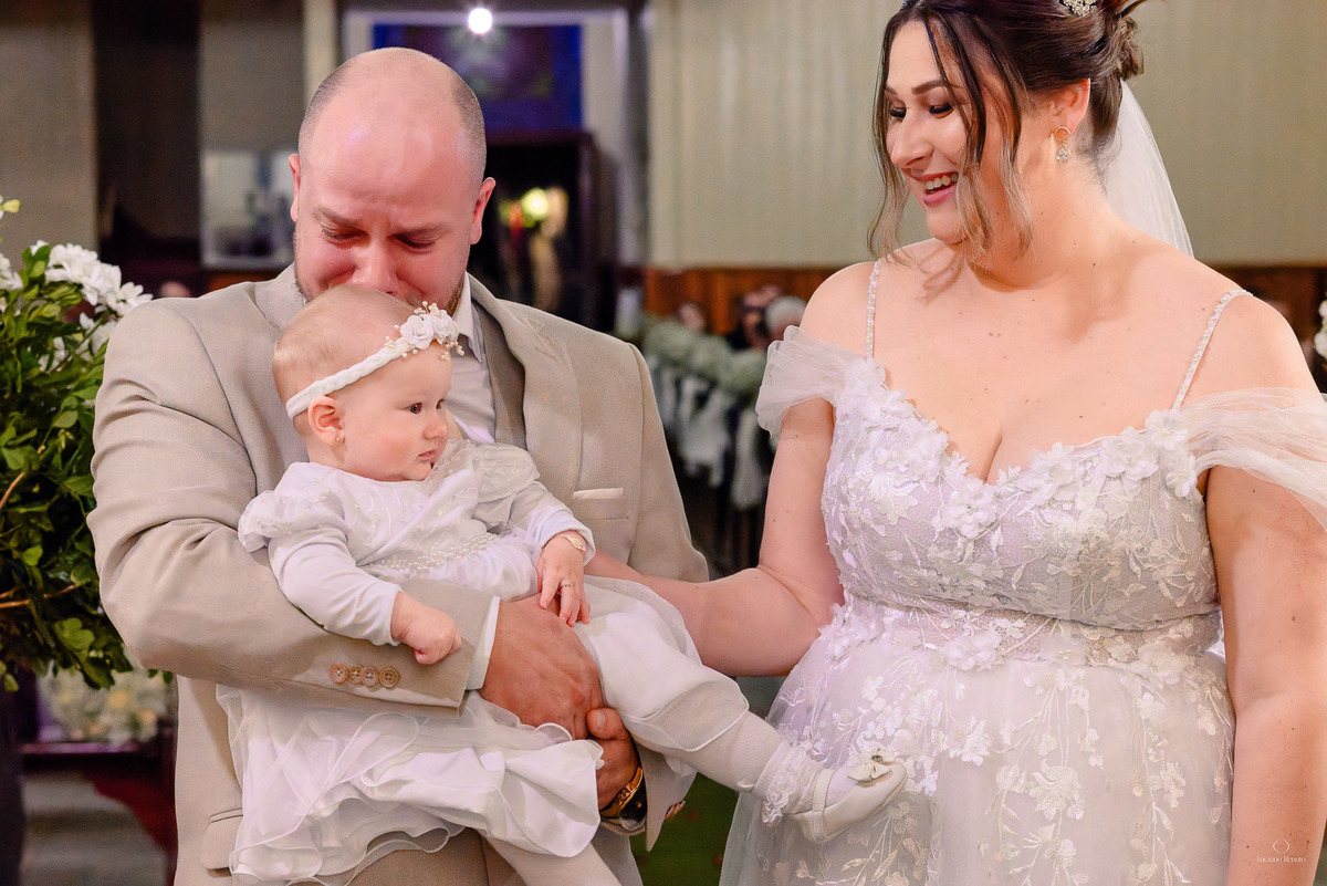 Mas o que realmente tornou esse dia único foi a presença da pequena Ísis, filha do casal, que fez parte desse momento tão esperado.