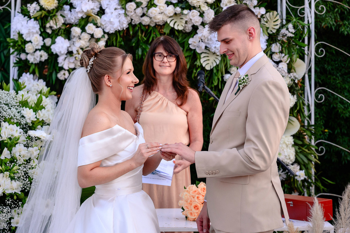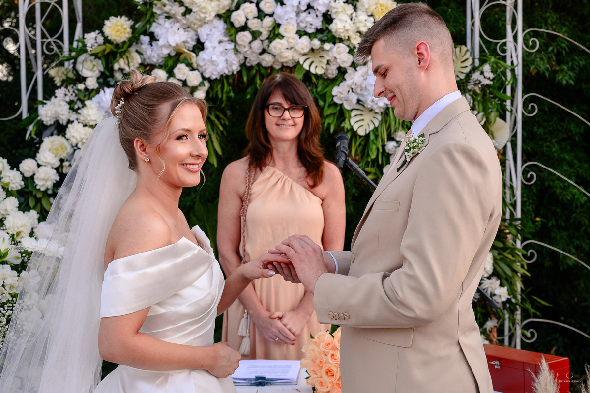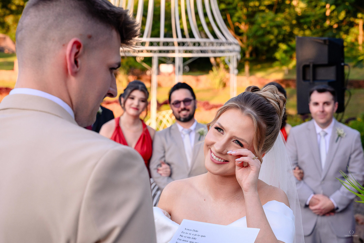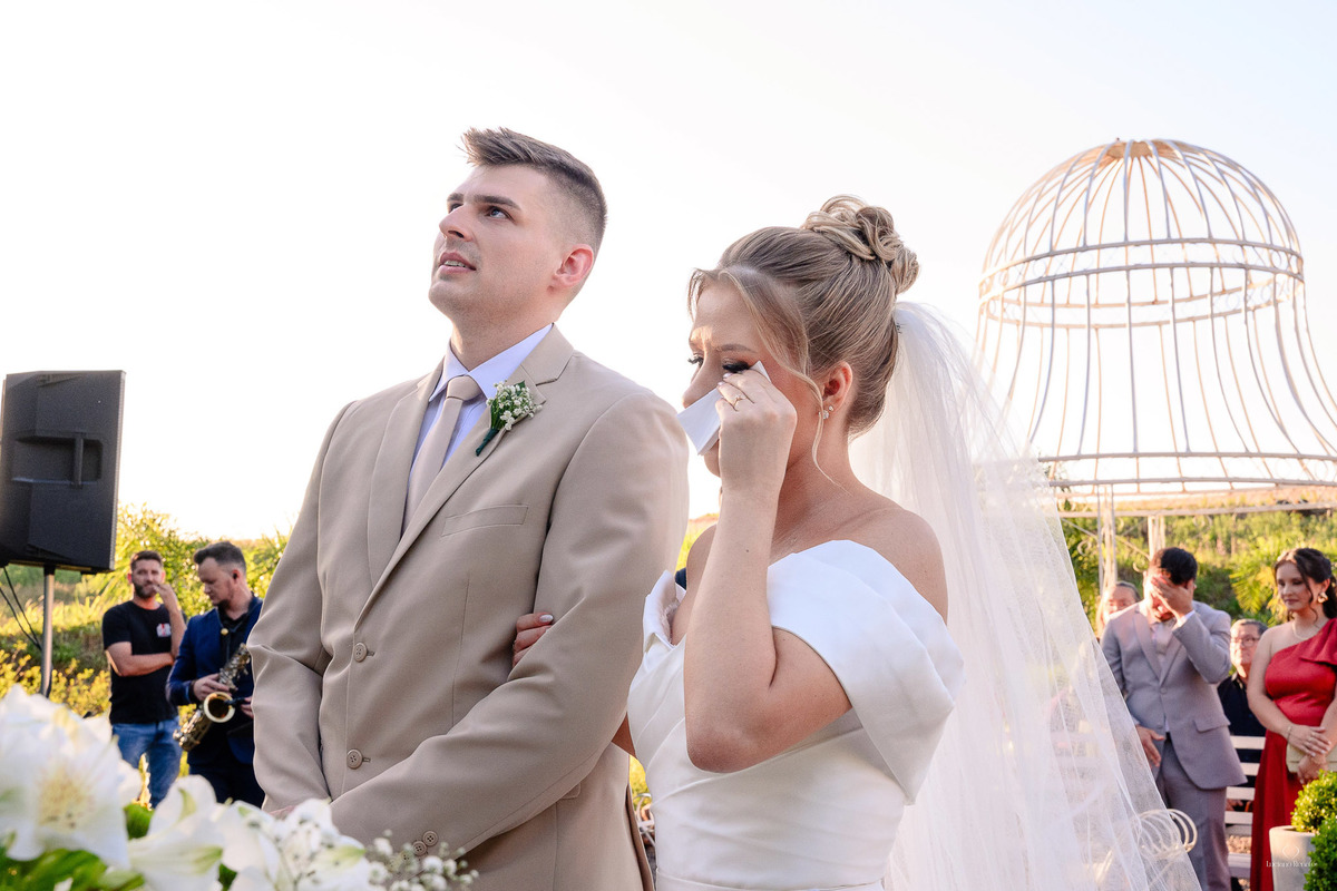 A cerimônia foi intensa, cheia de significado e emoção. As lágrimas vieram e tocaram não só os noivos, mas todos que estavam ali presentes, compartilhando cada palavra, cada olhar e cada promessa.