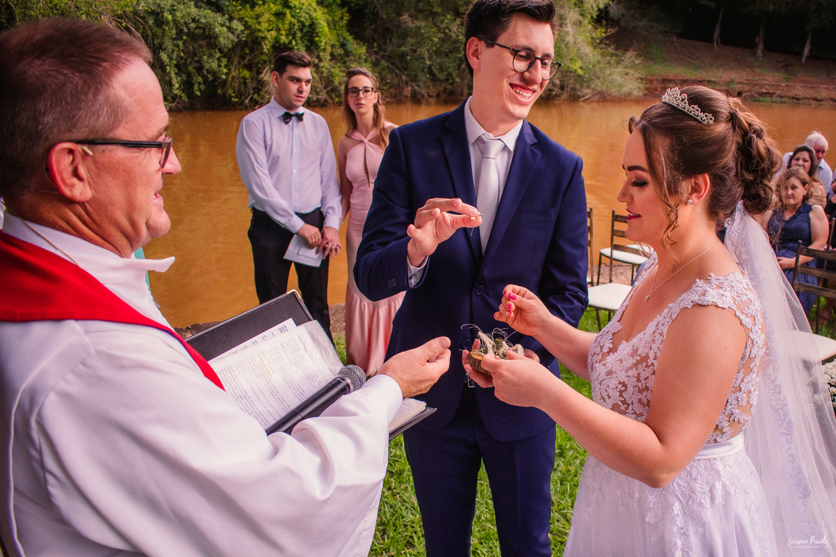 A Juliana e o Nilson são um casal da nossa capital gaúcha, Porto Alegre, que estavam planejando o seu casamento aqui em Santo Cristo, no Hotel Fazenda Três Cascatas. Trocamos as primeiras mensagens pelas redes sociais e assim fui apresentando meu trabalho para eles, como funcionava, tirando todas as duvidas e sim, acabamos fechando esse trabalho.