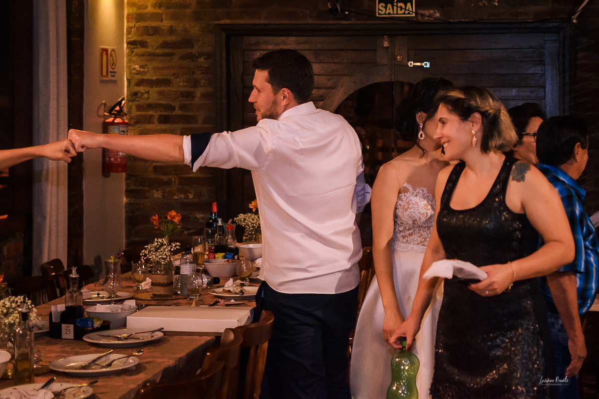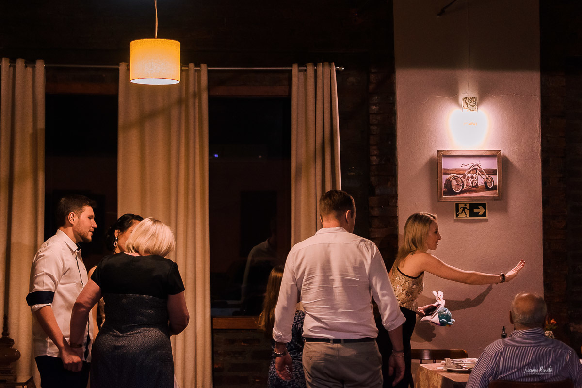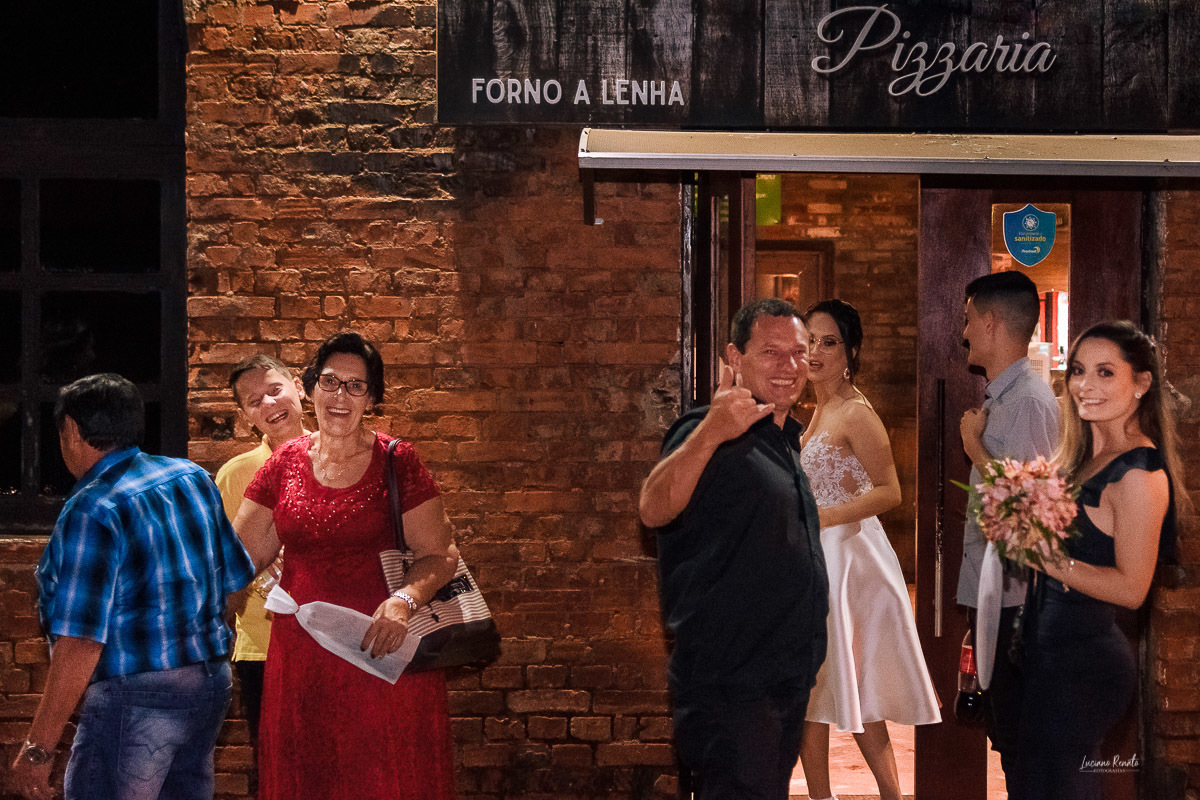 Mais tarde a comemoração aconteceu lá na Pizzaria Le Mangiare. Os noivos convidaram apenas a família, pessoas importantes que sempre estão ao seu lado!