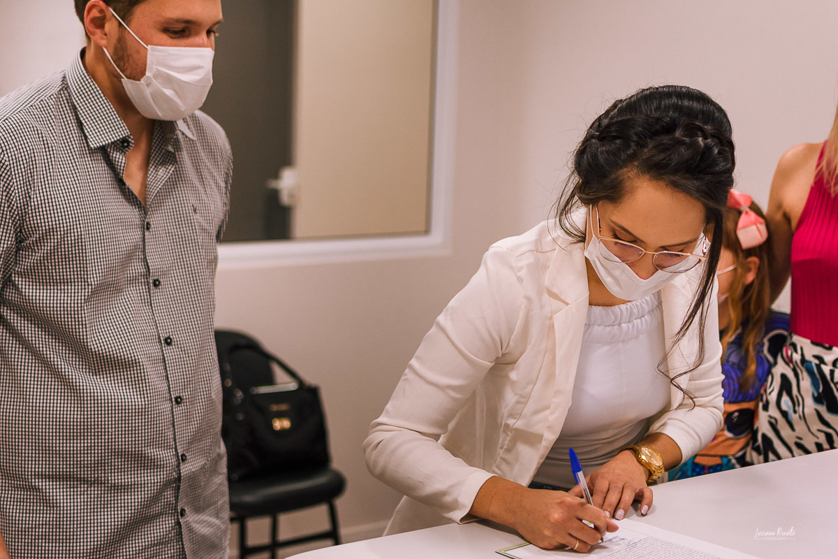 O planejamento desse dia já vinha acontecendo a muito tempo, e começamos registrando primeiro o casamento civil, aqui no cartório de Três de Maio.