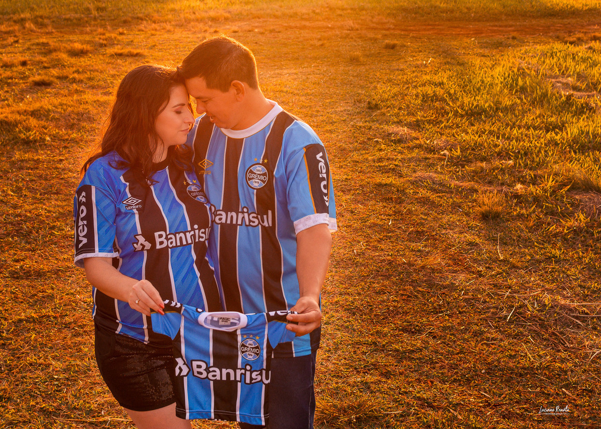 Com um cenário simples, um dia com sol lindo e uma tarde incrível! O Valdoir também foi super cuidadoso e carinhoso com a Fabi. Lembrando também que toda a família é gremista, então não pode faltar a foto clássica com a camiseta do Grêmio.