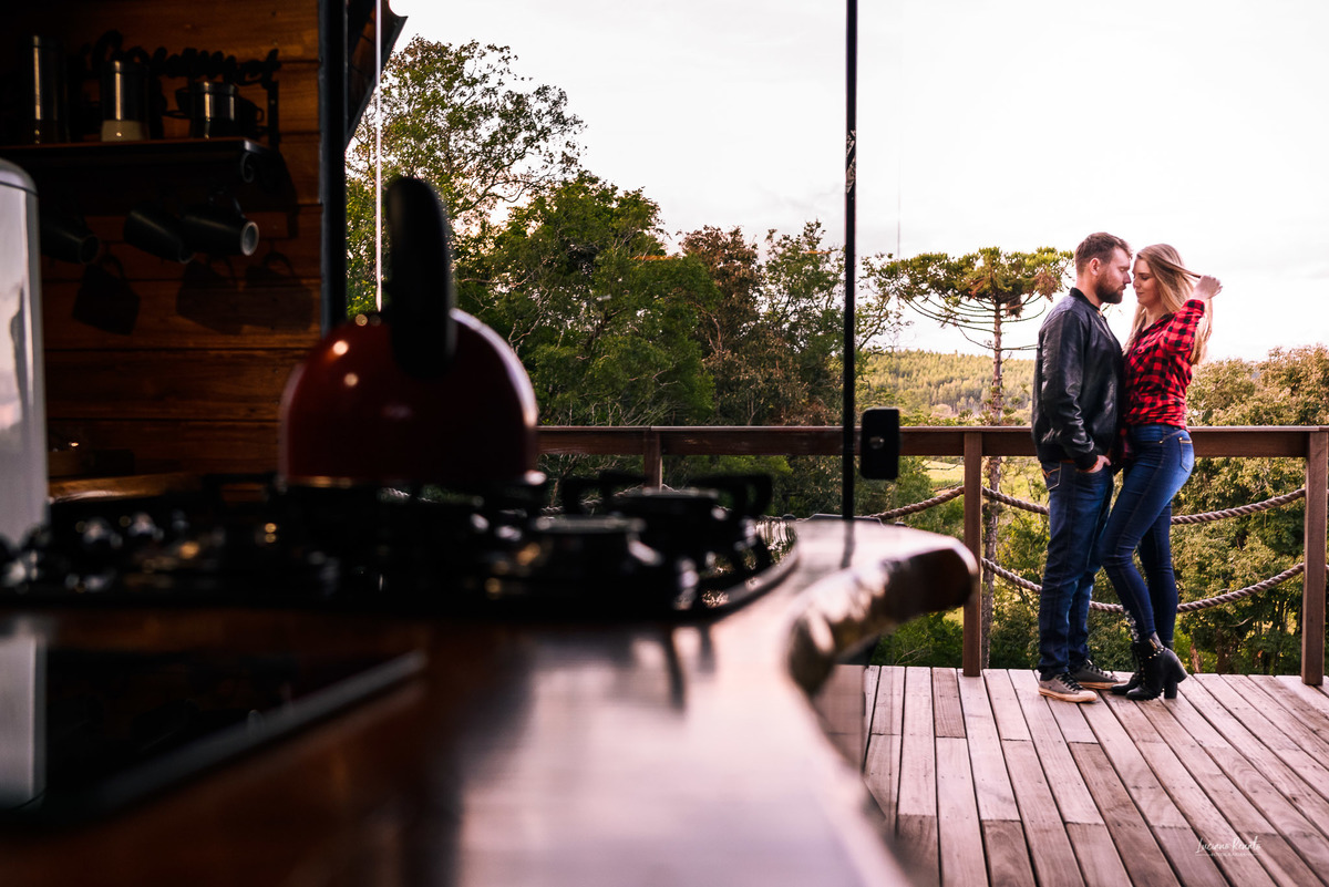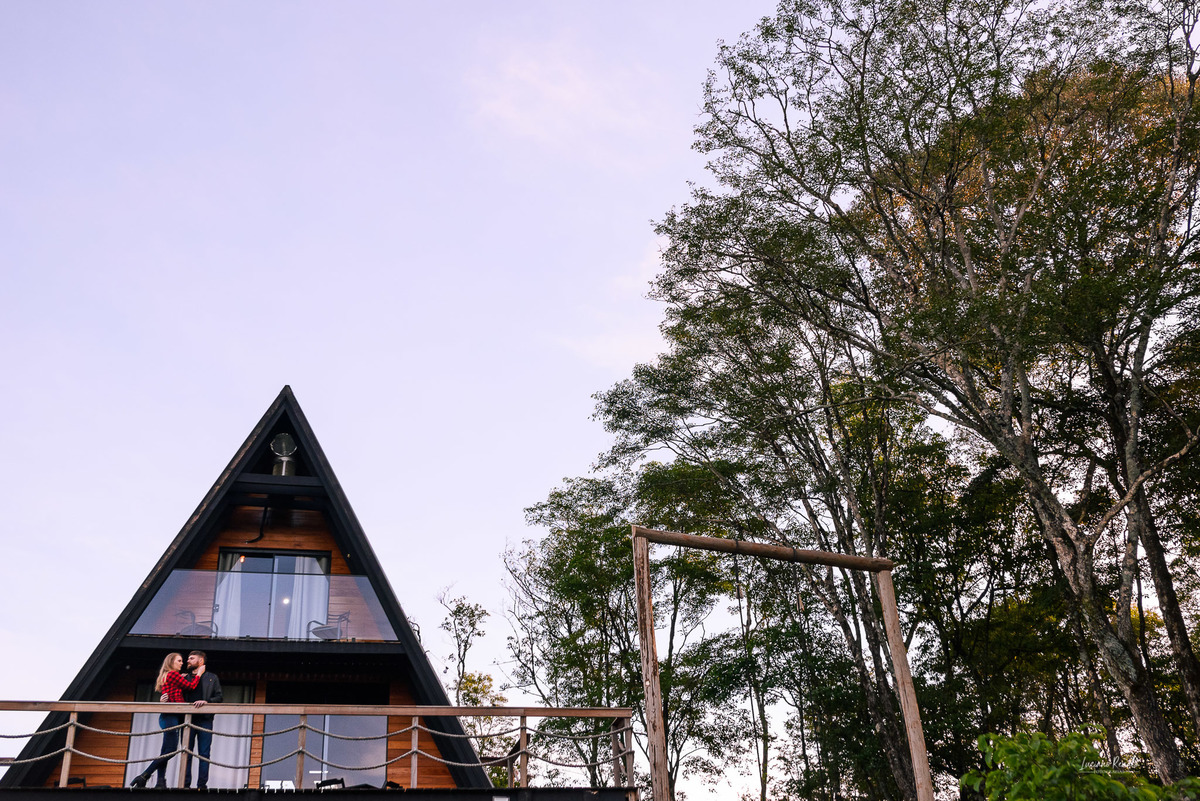 Eles adoram ouvir um bom rock, estar com as pessoas que amam e em lugares calmos. Dito isso, nós encontramos La Cabana Missões, inspirada nos charmosos chalés de estilo “A FRAME”, conectado com a natureza. Um local incrível que gerou imagens lindas!