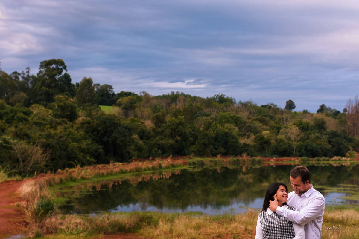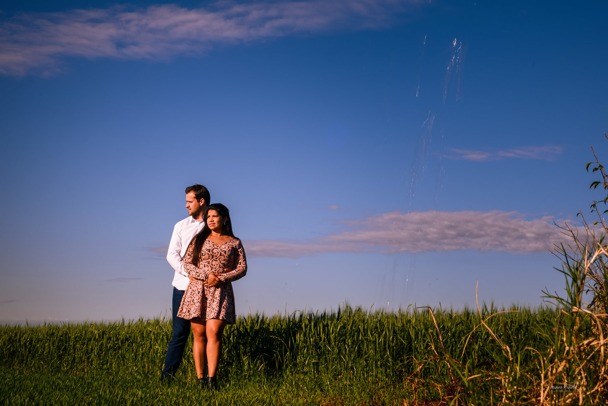 Os dois vieram lá de Goiás para casar aqui em Três de Maio e todo o nosso contato foi através de WhatsApp. Conheci eles apenas no dia em que marcamos as fotos do pré-wedding e desde o inicio a Patrícia me falou que gostaria de fazer as fotos no interior, campo, pois isso tem muito a ver com eles e com o cotidiano deles.