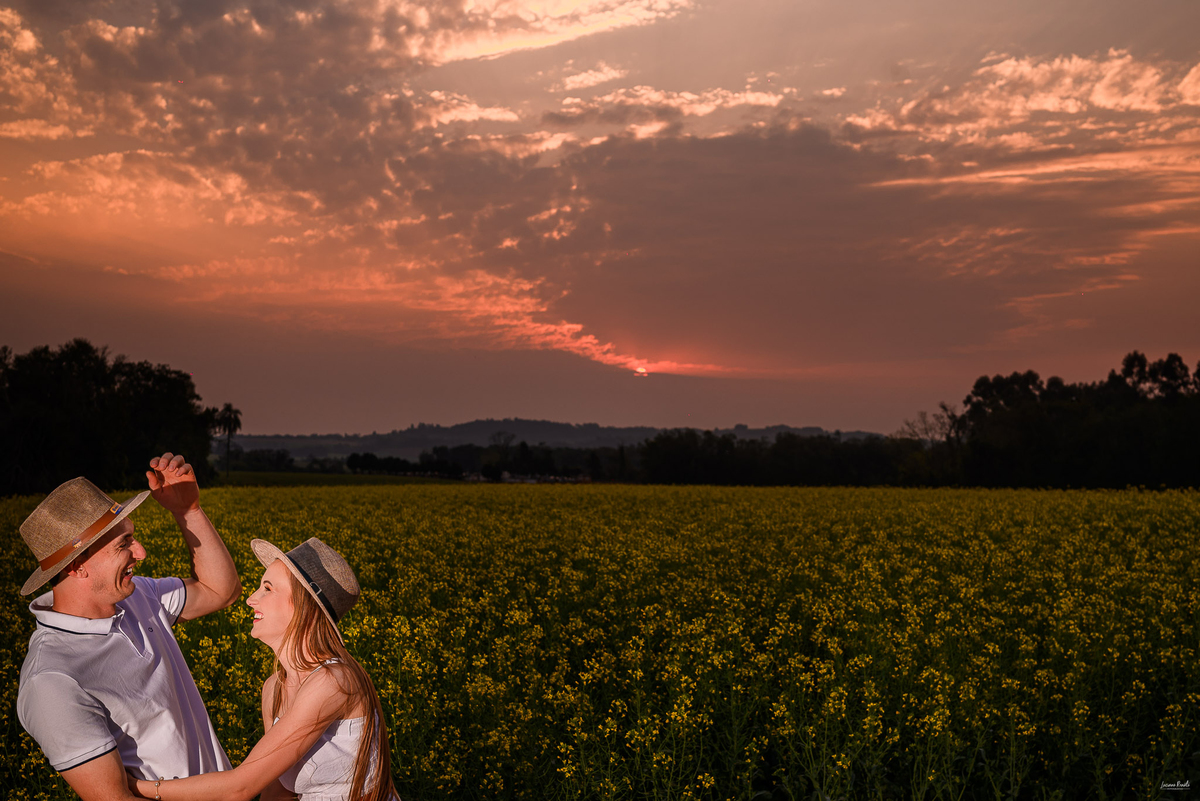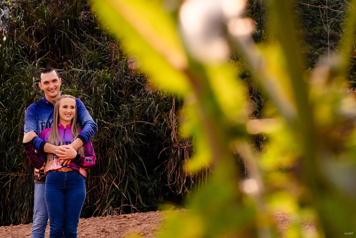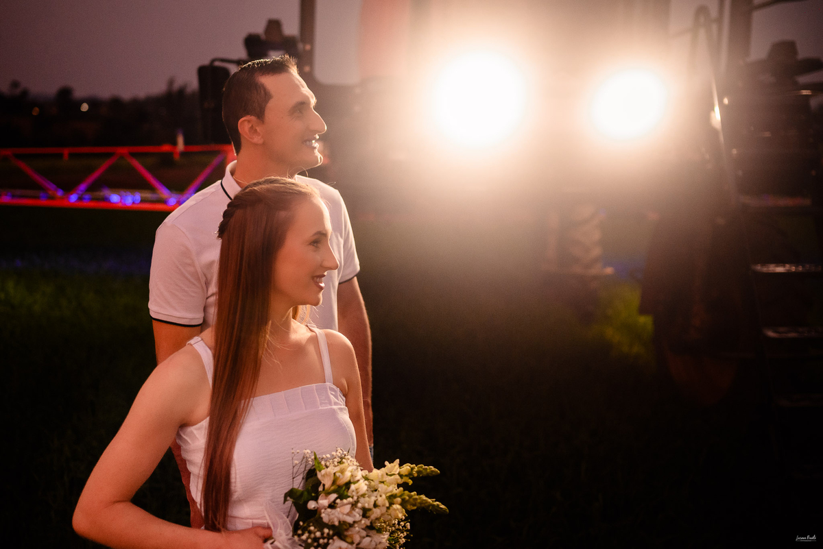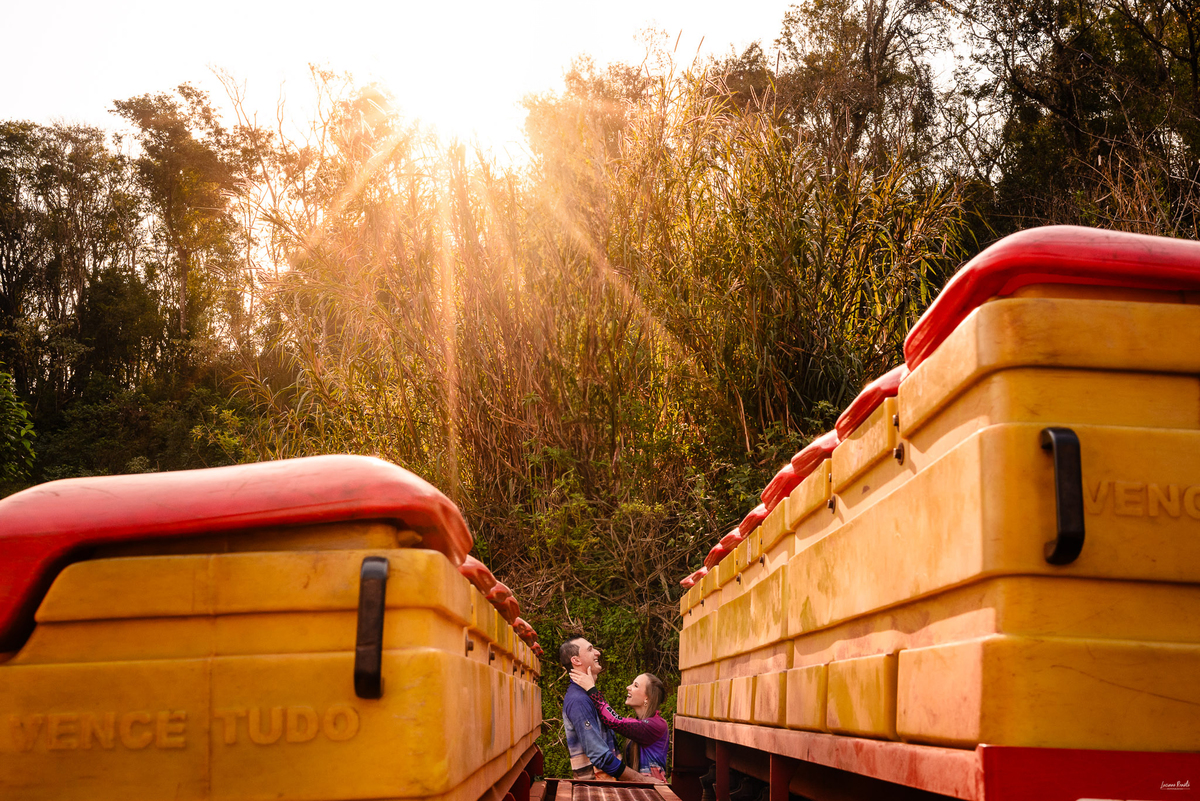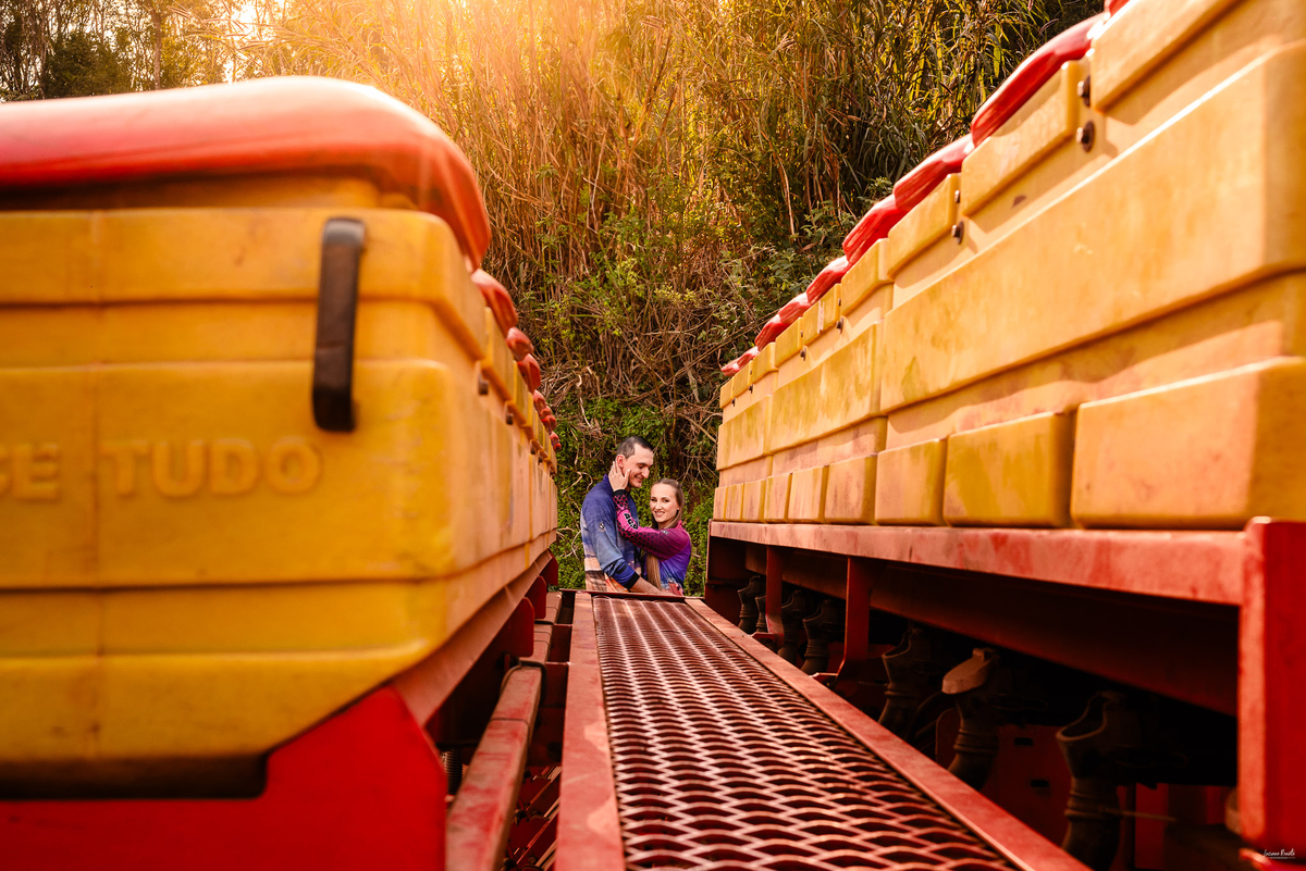 No caso de Diego e Angela, não poderia haver escolha mais especial do que o próprio ambiente em que eles vivem e trabalham, cercados pelos maquinários agrícolas que fazem parte de seu cotidiano. Esses elementos não são apenas parte do trabalho, mas também símbolos do compromisso, da dedicação e da parceria que eles cultivam.