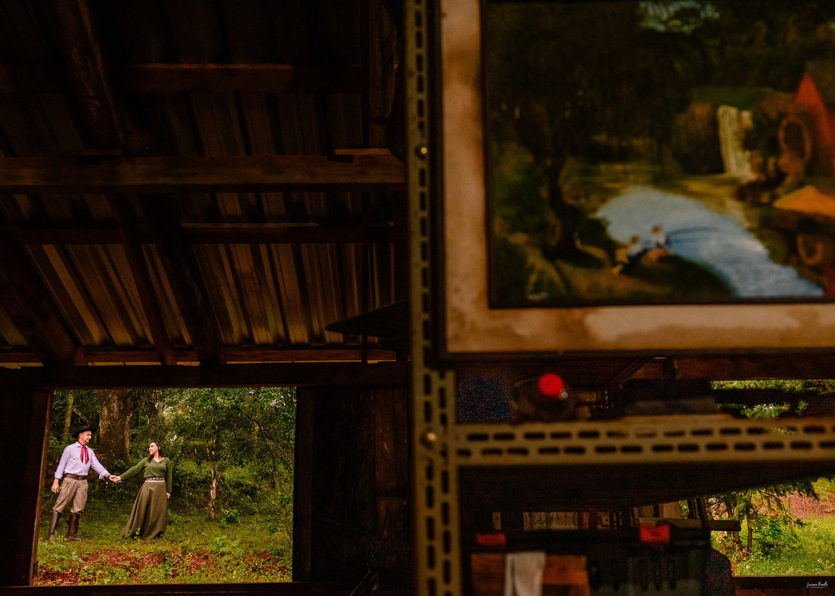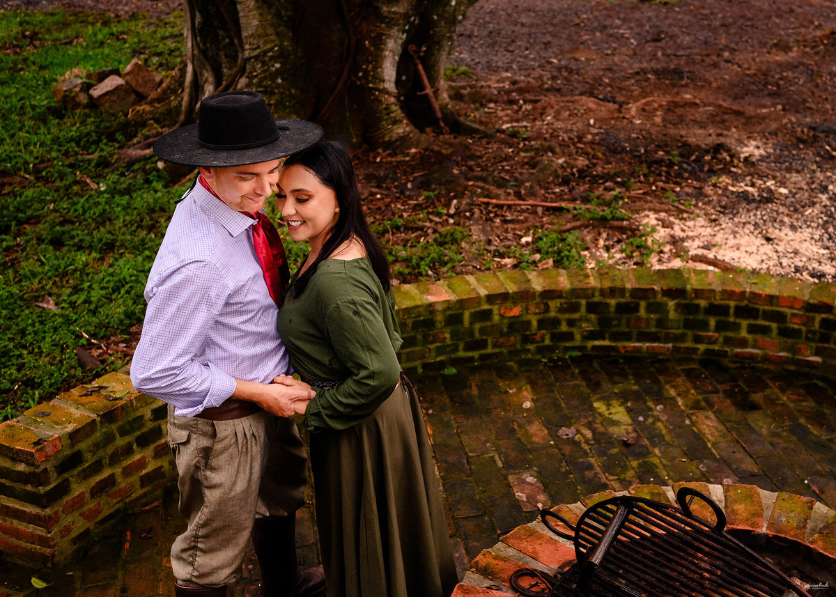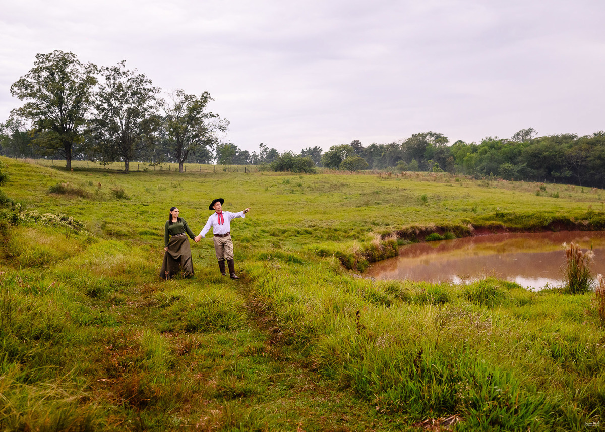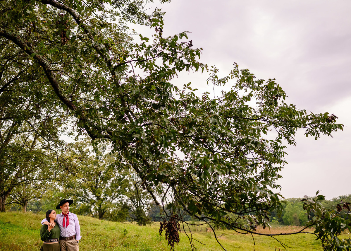Com trajes tradicionais, bombacha, vestido de prenda e um cenário rural de tirar o fôlego, cada foto capturou a força da tradição gaúcha e a ternura da união entre eles. O campo aberto, os cenários rústicos e o clima de simplicidade trouxeram uma atmosfera única, tornando esse ensaio inesquecível. 💍