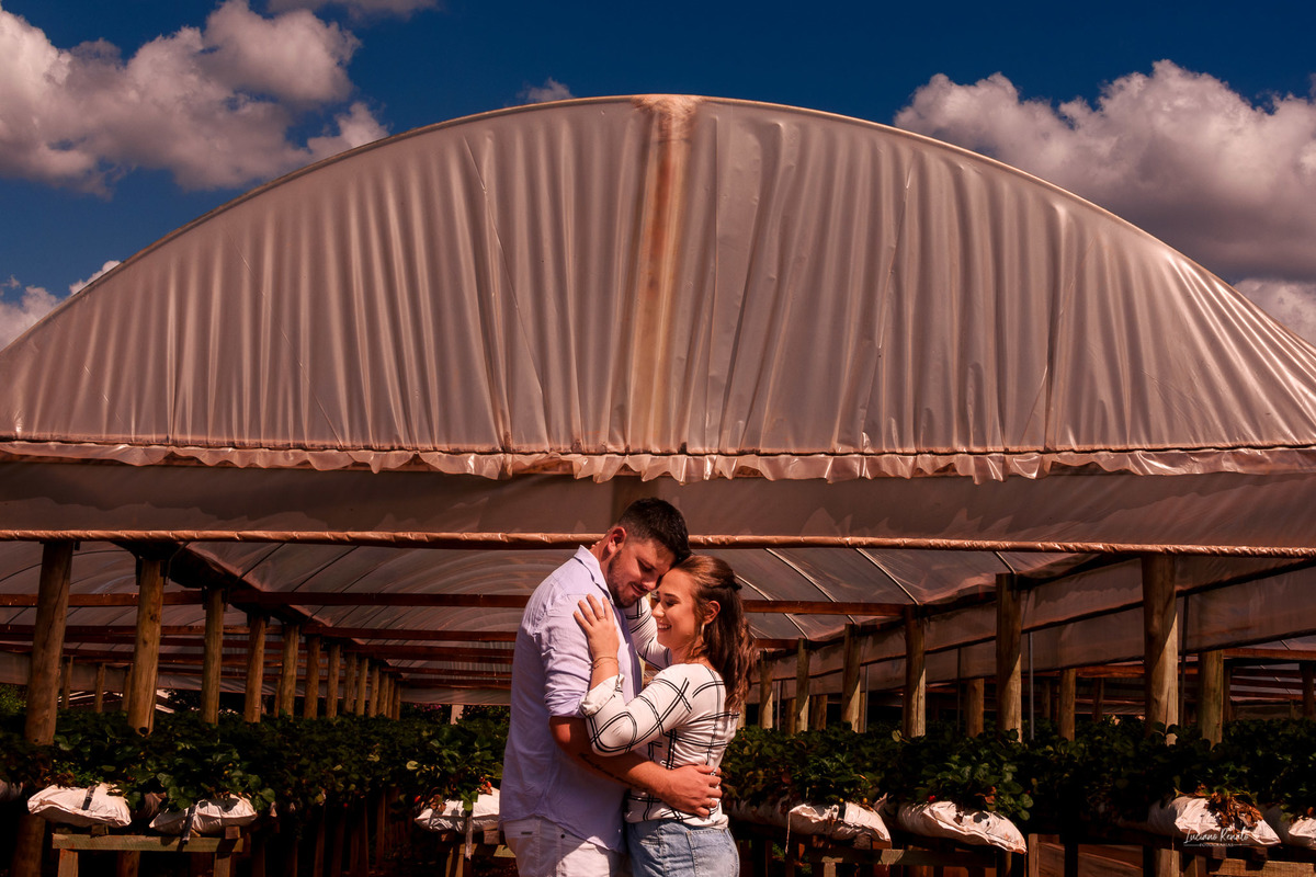 Eu e a Tati conversamos muito sobre o ensaio, principalmente sobre o local, pois o Jardel e a Tati são produtores de morango e para mim, o pré-wedding precisa ser feito em um local que tenha significado para eles. Nesse caso, a própria propriedade deles serviu de locação e como eles moram próximo do Rio Uruguai, aproveitamos para fazer algumas fotos lá no balneário também!